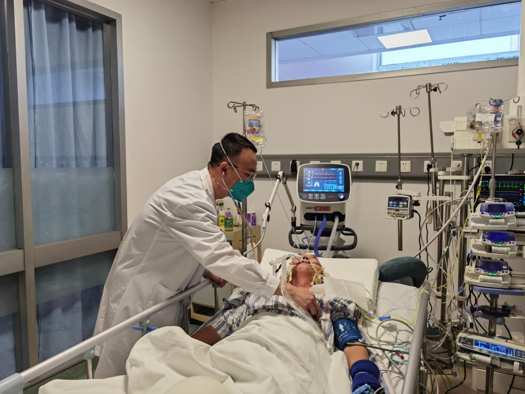 天津市人民医院ICU主任辛绍斌正在查看患者情况。(受访者供图)
