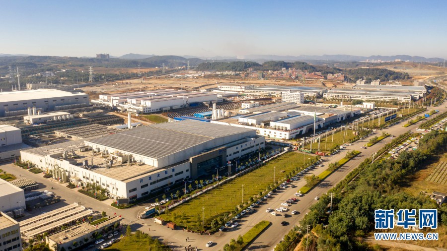 航拍沾益工业园区索通云铝90万吨阳极炭素项目(11月17日摄)。新华网 赵普凡 摄