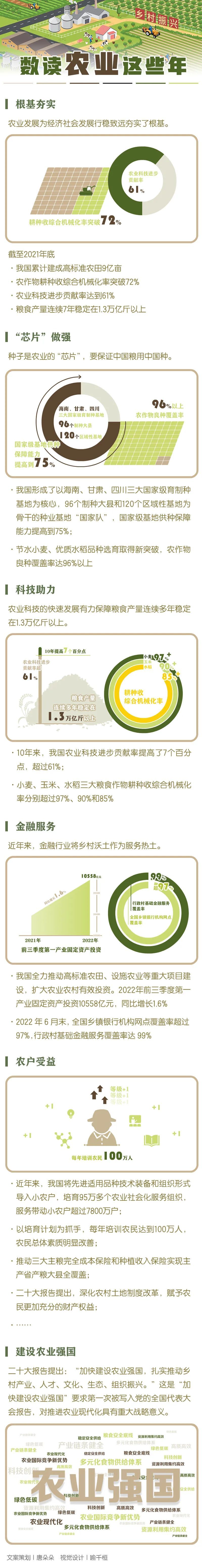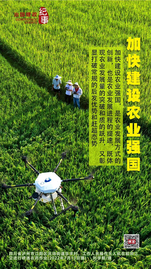 ◆ 中共中央总书记、国家主席、中央军委主席习近平在党的二十大报告中指出:“加快建设农业强国,扎实推动乡村产业、人才、文化、生态、组织振兴。”这是“加快建设农业强国”要求第一次被写入党的全国代表大会报告,对推进农业现代化具有重大战略意义。