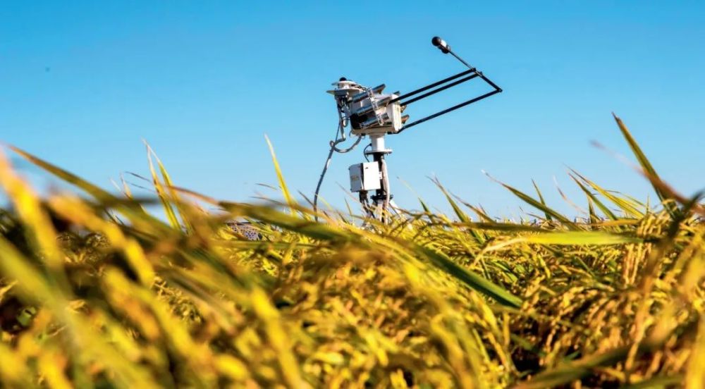 黑龙江省富锦市万亩水稻科技示范园内的气象监测设备(2022年9月2日摄)。 张涛摄 / 本刊