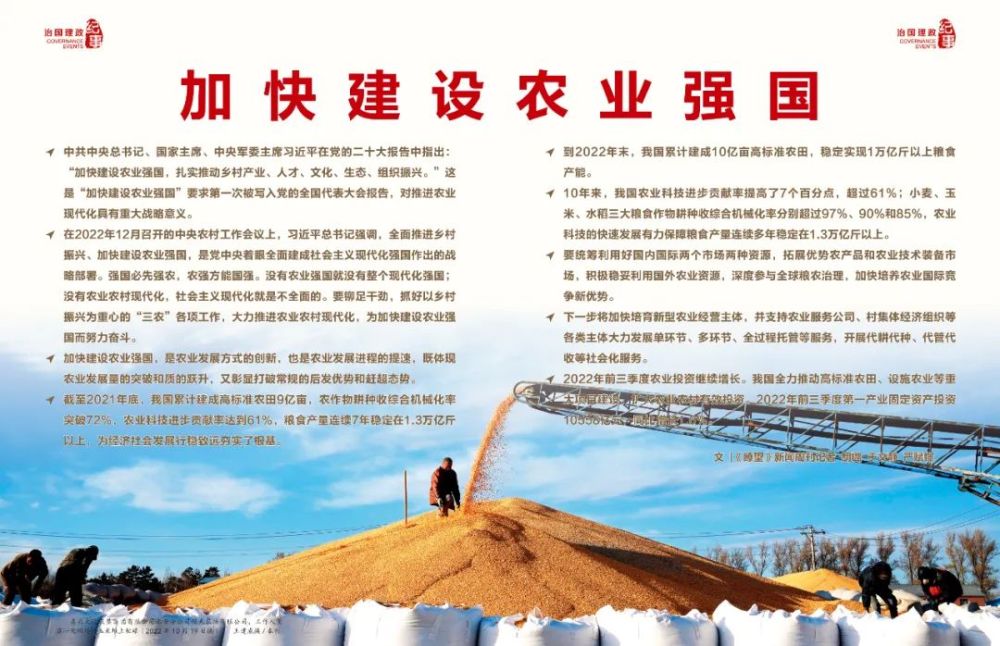 ◆ 加快建设农业强国,是农业发展方式的创新,也是农业发展进程的提速,既体现农业发展量的突破和质的跃升,又彰显打破常规的后发优势和赶超态势。