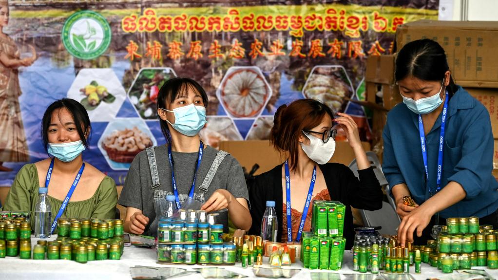 2022年9月18日,东博会RCEP展区柬埔寨展馆的工作人员在调整展品方便观众选购。2022年是RCEP生效实施的第一年,第19届中国—东盟博览会设立RCEP展区,突出中国—东盟合作的重点和特色,并拓展与日韩等其他RCEP成员国的合作,为中国与东盟的经贸投资合作增添新机遇、注入新动能。新华社记者 张爱林 摄