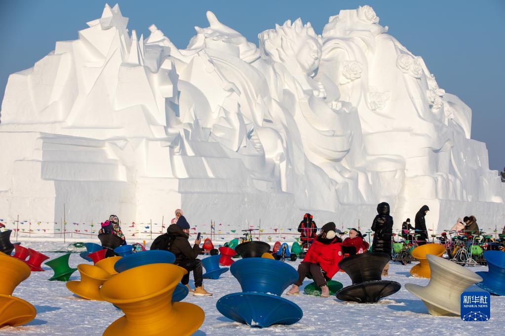 当日,许多市民和游客来到第35届哈尔滨太阳岛国际雪雕艺术博览会园区游玩,欢度元旦假期。