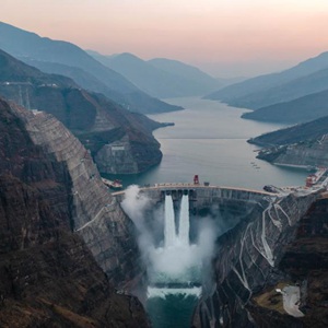 白鹤滩水电站一景(2022年12月19日摄,无人机照片)。新华社记者 胡超 摄