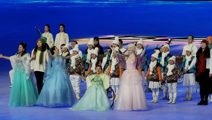 根据《开幕式媒体指南》,在歌曲《雪花》的动人旋律中,舞者们跳起了浪漫的华尔兹。现场所有表演者用手语和欢呼表达着“一起向未来”的愿望。在春回大地的意境里,所有人共同祝福本届冬残奥会,祝福这个美好的春天![ 2022-03-04 21:36 ]