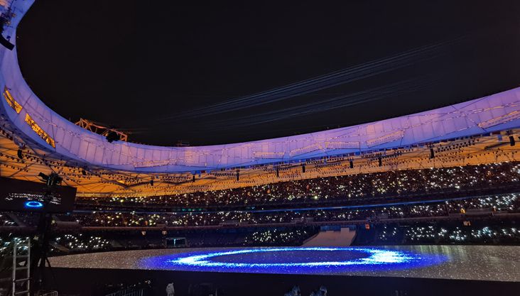 观众打开了手机闪光灯,看台上繁星点点。[ 2022-03-04 19:37 ]