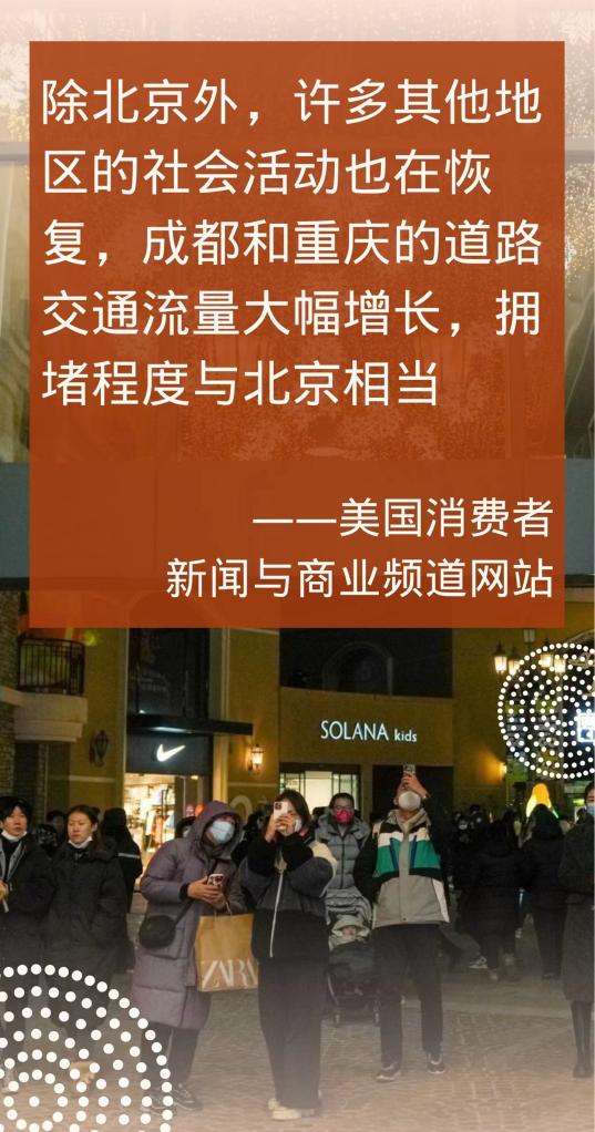 “随着中国经济从三年的新冠疫情中复苏,北京的街道再次出现拥堵,游客争相预订出国度假,企业预计商业活动将回升。”英国《金融时报》29日报道称。