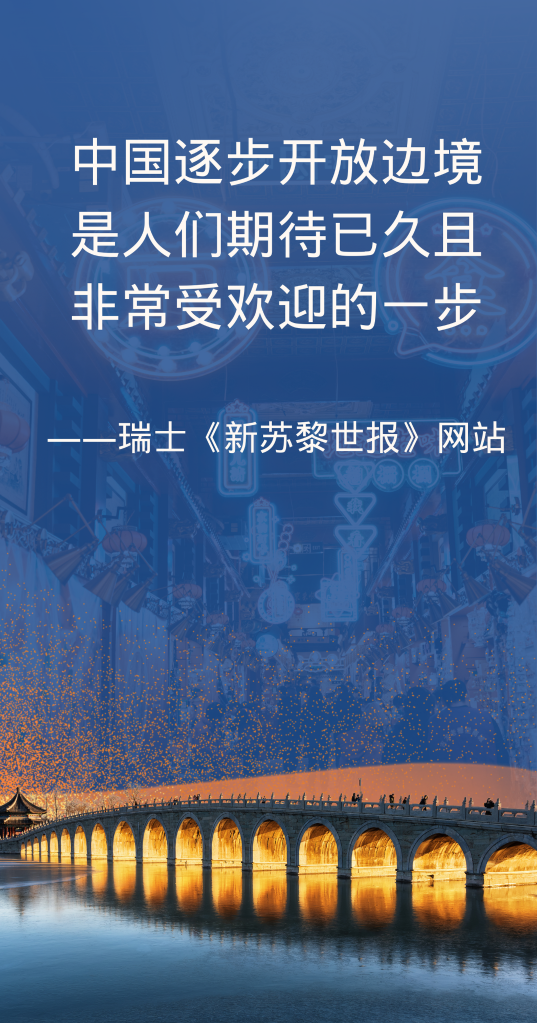英中贸易协会中国区负责人汤姆·辛普森对法新社记者说,这一宣布“非常、非常受欢迎”。瑞士《新苏黎世报》网站27日报道,瑞士国家旅游局称,中国逐步开放边境是人们期待已久且非常受欢迎的一步。