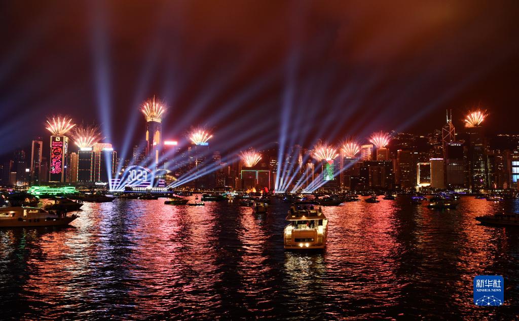 新华社香港1月1日电(记者谢妞)12月31日晚,香港地标维多利亚港变身舞台,上演集文化艺术、体育、创意动画与烟火、光影效果等不同元素于一身的多媒体汇演,与香港市民共同迎接2023年到来。