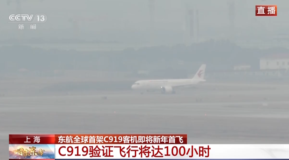 总台央视记者 陈俏:首先在上海虹桥机场的空管指挥塔台上向大家问候:新年好!全球首架国产大飞机C919今天的验证飞行,在上午8点30分正式开始。这是自2022年12月26日以来,C919的第9架次验证飞行,也是在2023年的新年首飞。据了解,C919总计要进行100小时的验证飞行。