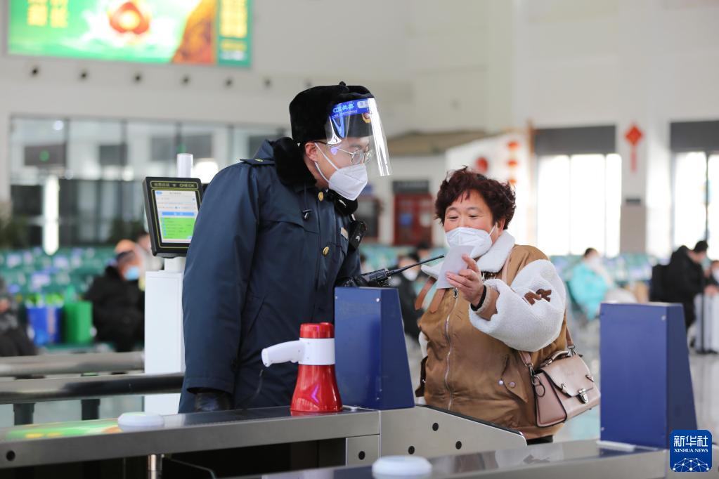1月1日,宝兰高铁甘肃定西北站的工作人员在引导旅客检票。