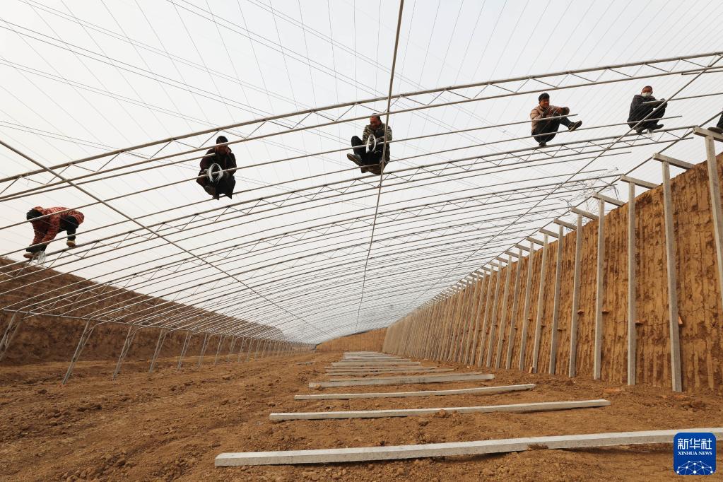 1月1日,河南省焦作市温县张羌街道马庄村村民在建设温室大棚。