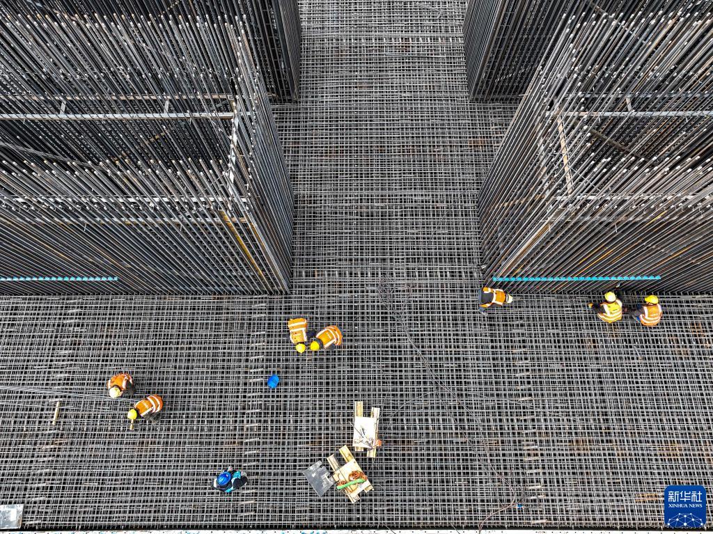 1月1日,中铁十局的建设者在河南省济源市沿太行山高速西延项目虎岭河特大桥建设工地施工。