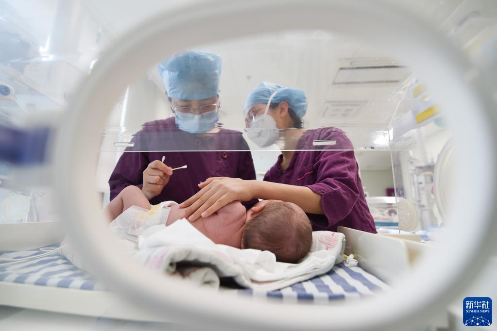 1月1日,在江苏南京市江宁医院,医护人员在护理新生儿。