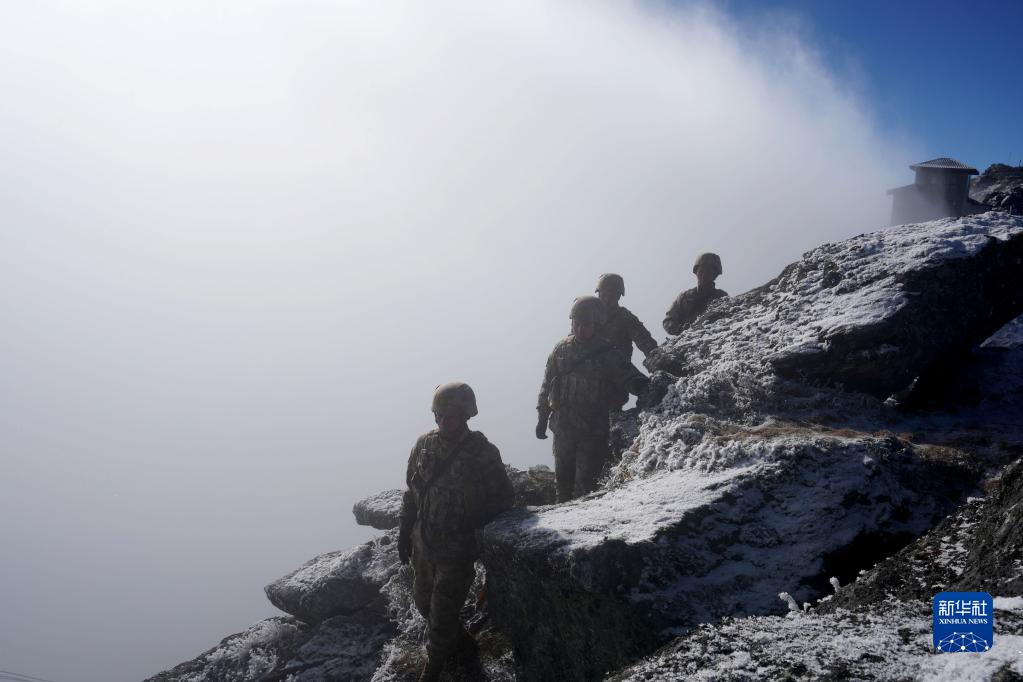 1月1日,在西藏亚东海拔4655米的詹娘舍哨所,边防官兵踏上巡逻路。