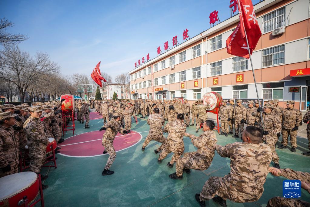 1月1日,武警天津总队新兵团组织开展系列文体活动,官兵们正在进行拔河比赛。