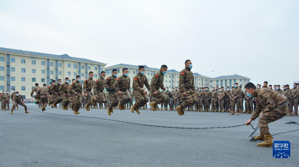 1月1日,武警安徽总队机动支队组织官兵开展跳绳比赛。