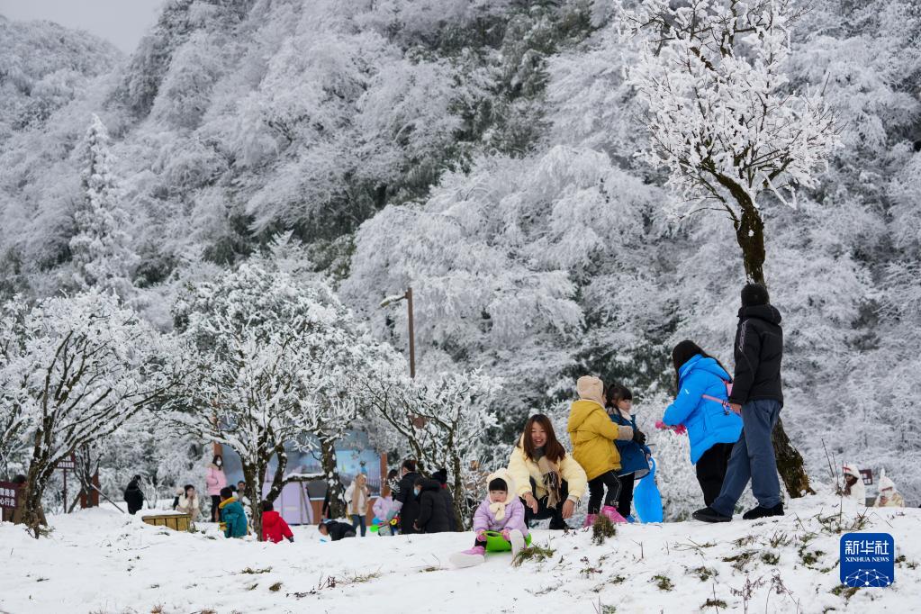 当日,位于重庆市南川区的世界自然遗产地金佛山迎来降雪。景区内雪花纷飞,银装素裹,南方罕有的冰雪景色吸引了众多游客前往观光旅游。据了解,当日金佛山景区接待游客达12000人,实现了新年冬季旅游的“开门红”。