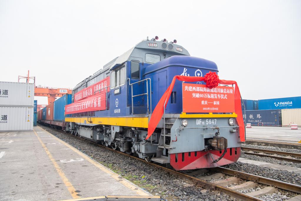 2022年12月30日,两列西部陆海新通道班列同时从成都和重庆发出,分别前往马来西亚和泰国,标志着西部陆海新通道川渝总运量突破60万标箱。