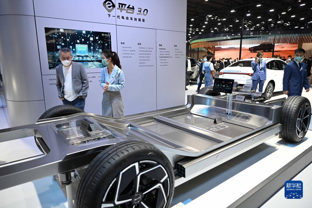 在第二十届广州车展,参观者了解比亚迪电动车平台3.0(2022年12月30日摄)。新华社记者 邓华 摄