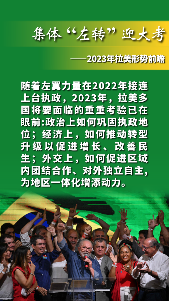 随着左翼力量接连上台执政,2023年,拉美多国将要面临的重重考验已在眼前:政治上,如何巩固执政地位;经济上,如何推动转型升级以促进增长、改善民生;外交上,如何促进区域内团结合作、对外独立自主,为地区一体化增添动力。