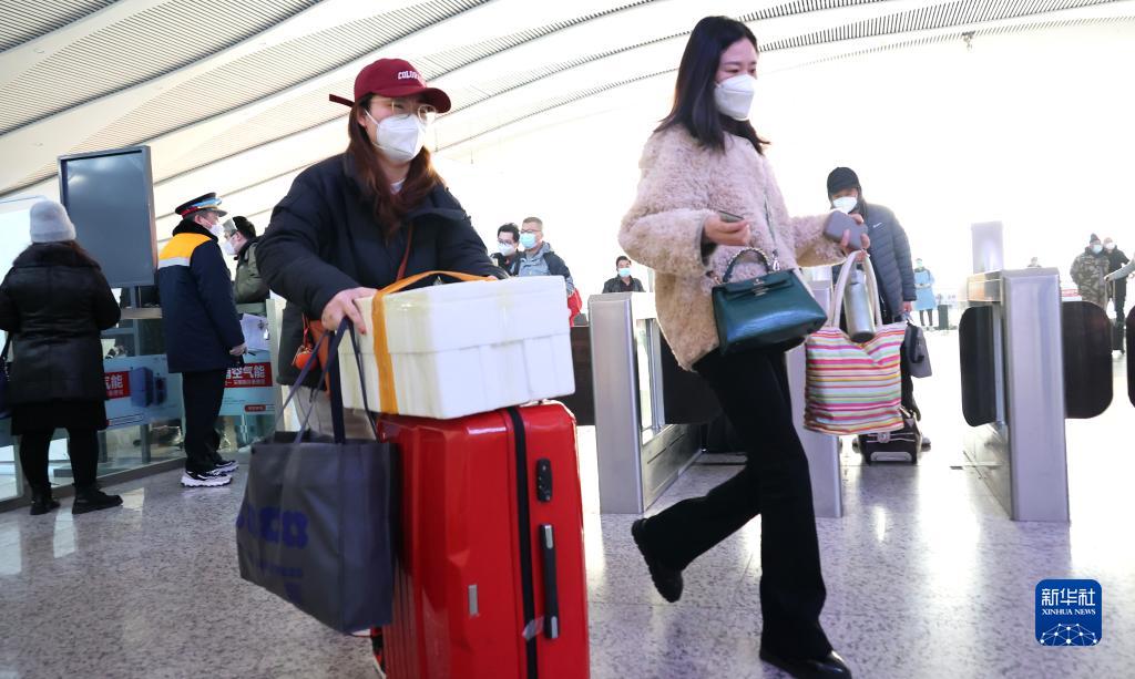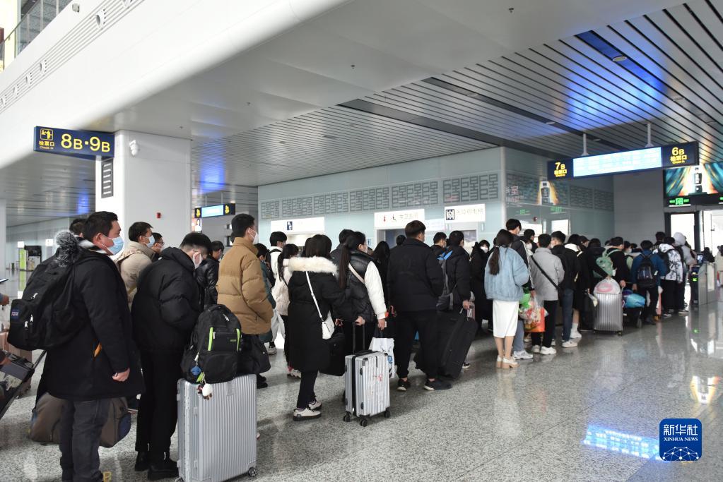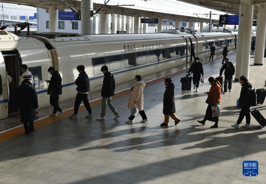1月6日,旅客在安徽阜阳西站准备乘坐高铁出行。新华社发(卢启建 摄)