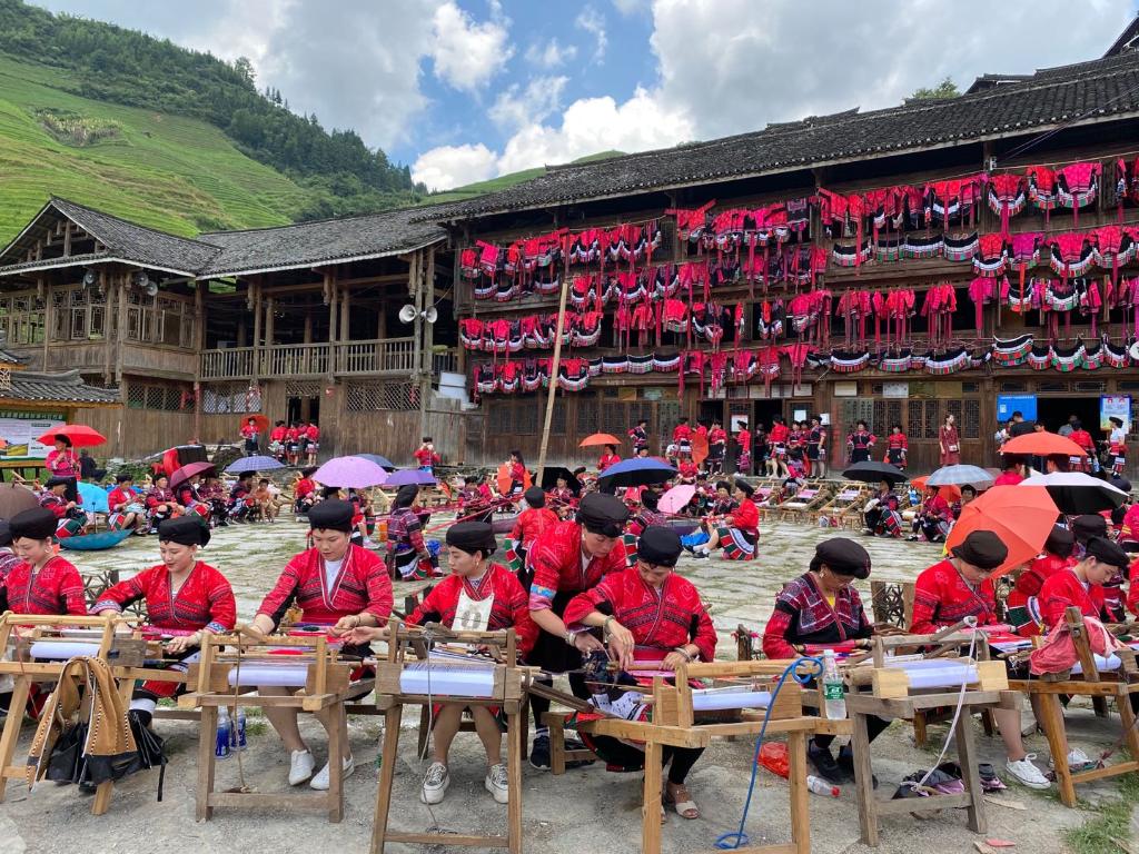 在旅游的持续推动下,当地瑶族文化焕发新的生机。每年农历六月初六“晒衣节”期间,不少当地居民展示织布艺术和瑶族服饰,“打旗公”、红瑶婚礼等特色民俗活动也吸引大量中外游客参观。“每当有游客到来,我们都会组织篝火晚会,表演民族歌舞等,很多外国友人都来这边体验。”潘早香说。