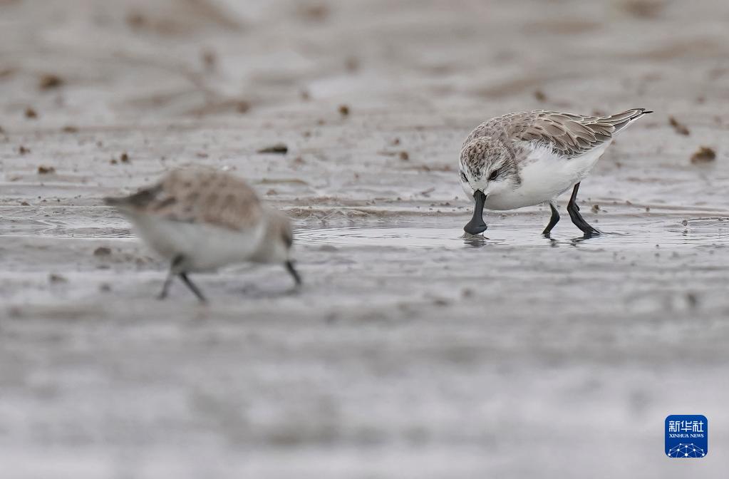 近日,世界珍稀鸟类、国家一级重点保护野生动物勺嘴鹬在福建省泉州晋江深沪湾滩涂一带栖息觅食。勺嘴鹬分布区域狭窄,数量稀少,被称为“鸟中大熊猫”。