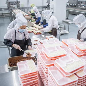 位于武汉的武东餐饮基地承担着中国铁路武汉局集团公司管内动车组列车盒饭的制作工作。这家餐饮基地拥有现代化的动车盒饭生产线,最高可日产盒饭2万份。