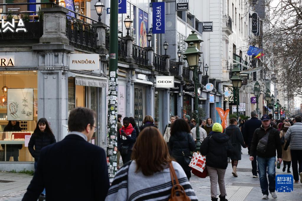 1月3日,行人在比利时布鲁塞尔的一条商业街上行走。新华社记者 郑焕松 摄