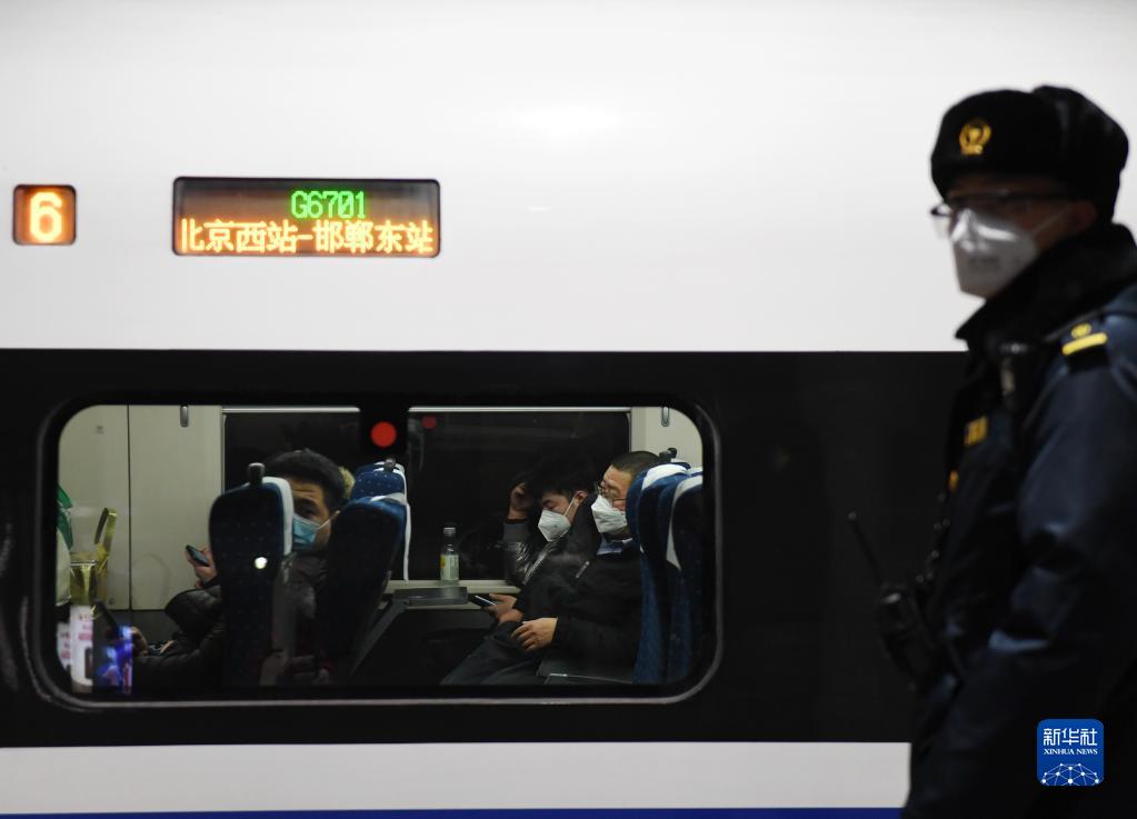 1月7日,乘客在G6701次列车上等候发车。