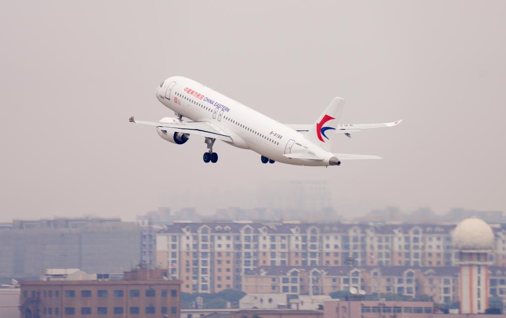 2022年12月26日,国产大飞机C919在上海虹桥国际机场起飞。 新华社发