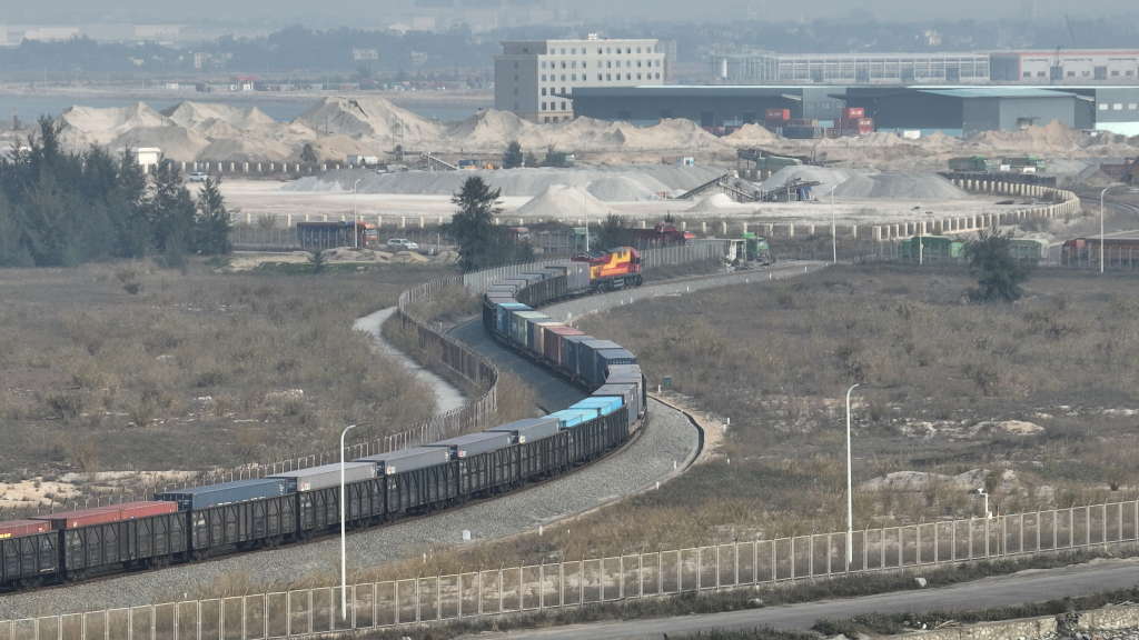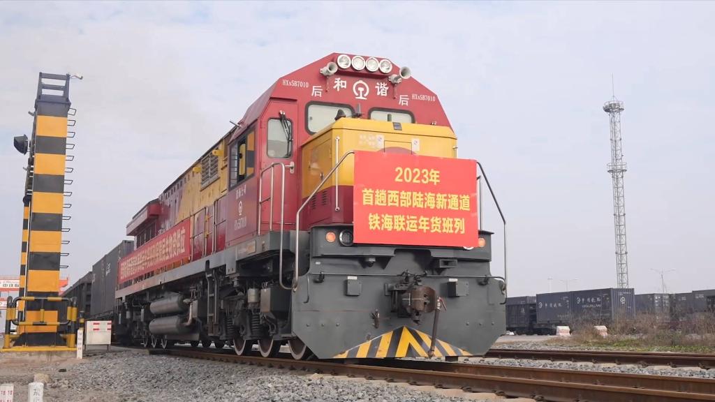1月6日上午,2023年首趟西部陆海新通道铁海联运年货班列x9574次列车从广西钦州发出。这个满载速食面条、香蕉干、食用植物油、椰汁等东盟特色年货的班列预计2天后到达重庆,再转运到终端市场供广大消费者采购。