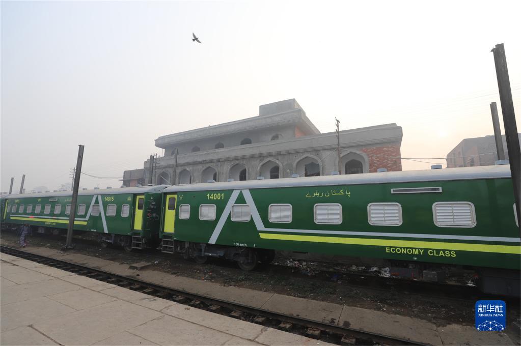 1月5日,从中国进口的宽轨客车停驻在巴基斯坦铁路拉合尔站。新华社记者 蒋超 摄