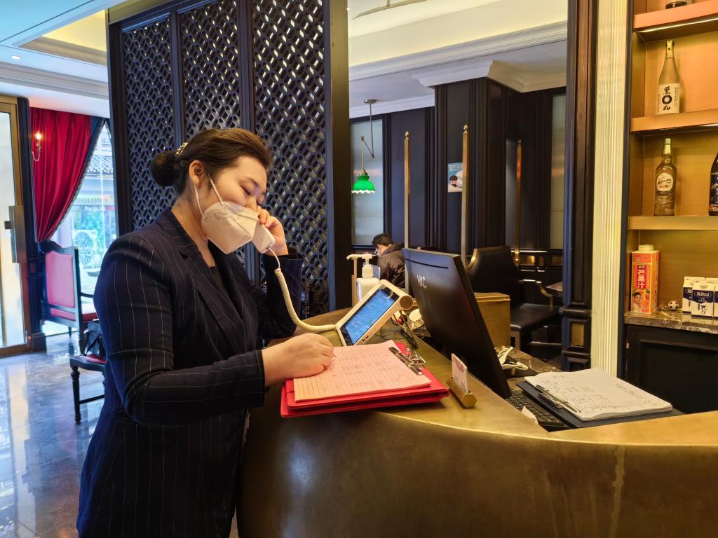 “城南往事”工作人员接听顾客预订电话。新华社记者 陈国峰 摄