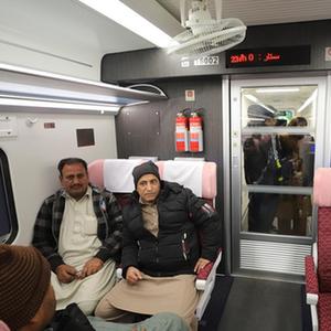 1月5日,在位于巴基斯坦拉合尔的从中国进口的宽轨客车里,巴基斯坦铁路公司的技术人员们正在体验乘坐列车。新华社记者 蒋超 摄