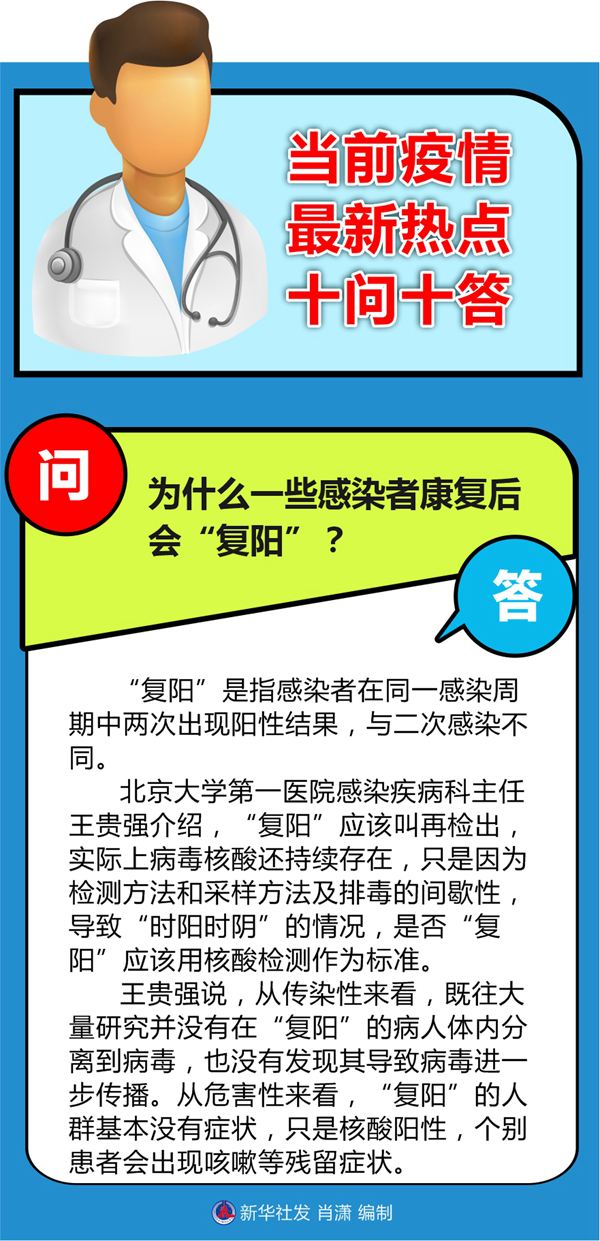 王贵强介绍,“复阳”应该叫再检出,实际上病毒核酸还持续存在,只是因为检测方法和采样方法及排毒的间歇性,导致“时阳时阴”的情况,是否“复阳”应该用核酸检测作为标准。