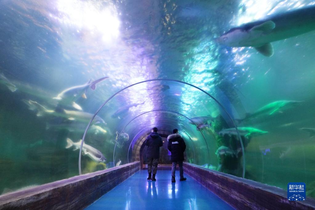 1月9日,参观者在抚远市鱼博馆参观。