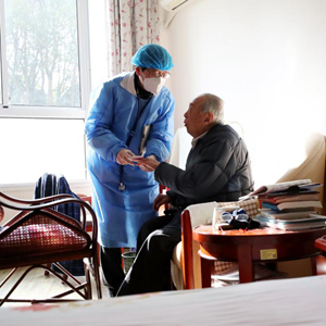 当前,“保健康、防重症”是养老院疫情防控工作的重点。彭俊介绍说,依据最新的诊疗方案和相应指南。对于已经感染,尤其是有症状的老人,除护理员加强监测外,院内医护坚持每日巡诊,重点查看老人血氧情况,一旦发现指标降低,即刻让老人吸氧,如有发烧症状,给予相应的退烧药物治疗。