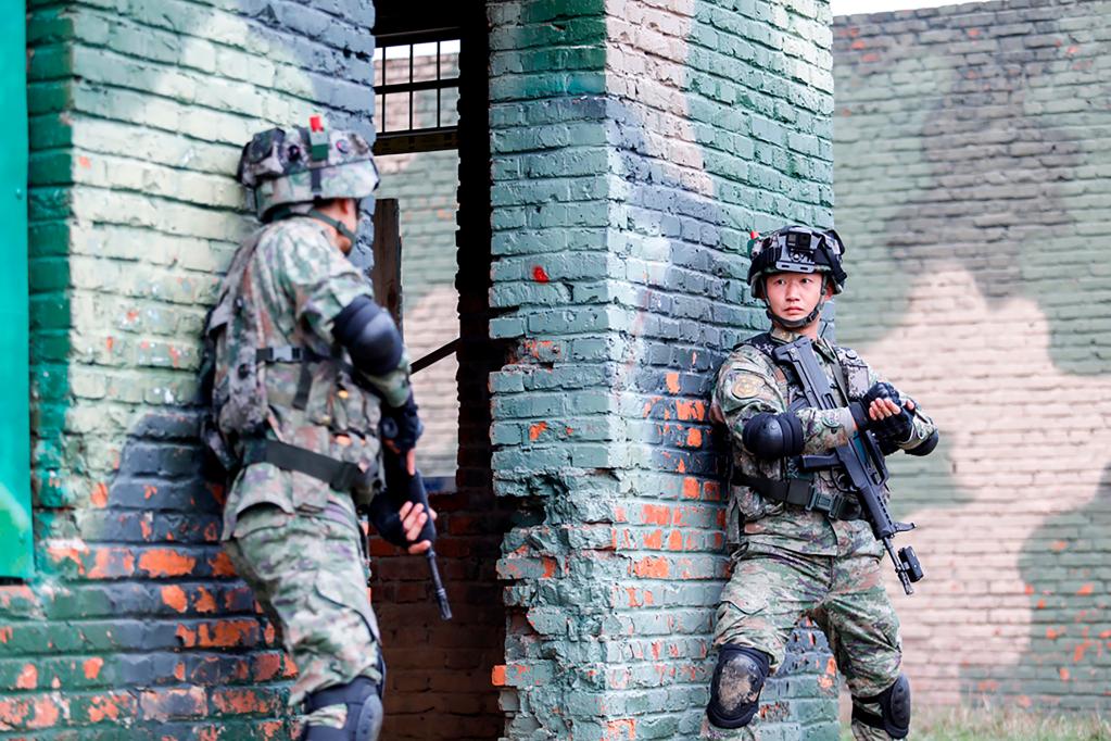 第71集团军“临汾旅”组织官兵进行城镇攻防演练(2022年11月21日摄)。新华社发(耿黎 摄)