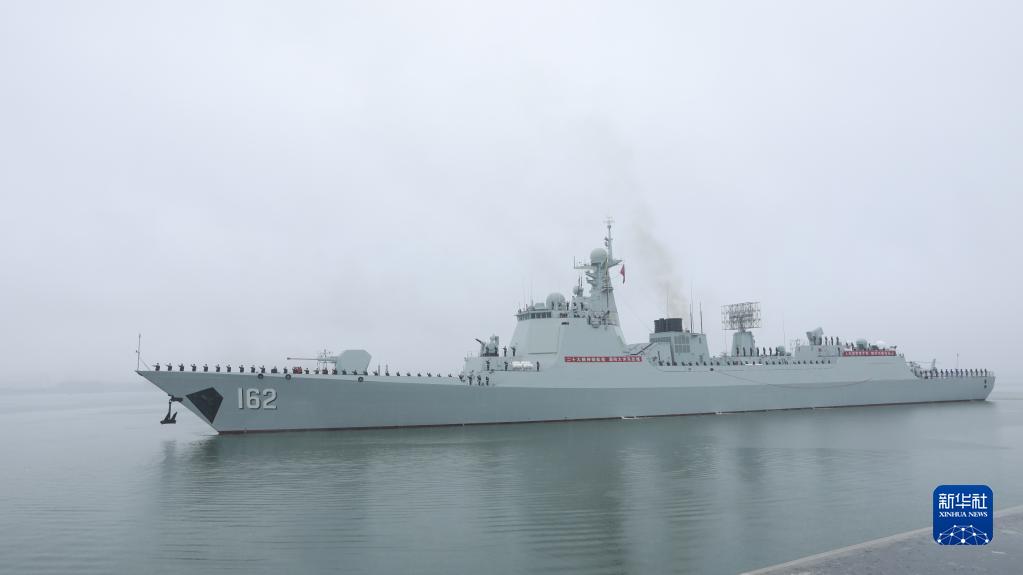 10时许,伴随着热烈的军乐声,编队舰艇依次解缆,缓缓驶离码头。甲板上,任务官兵整齐列队,挥手告别。