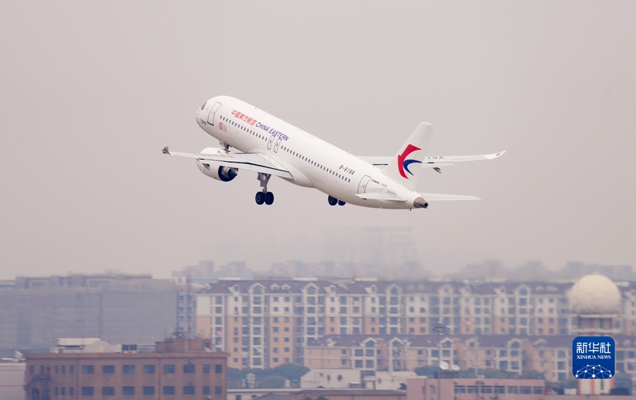 2022年12月26日,国产大飞机C919在上海虹桥国际机场起飞。 当日,国产大飞机C919交付东航的全球首架机的首班验证飞行开启,从上海虹桥国际机场飞往北京首都国际机场。 新华社发
