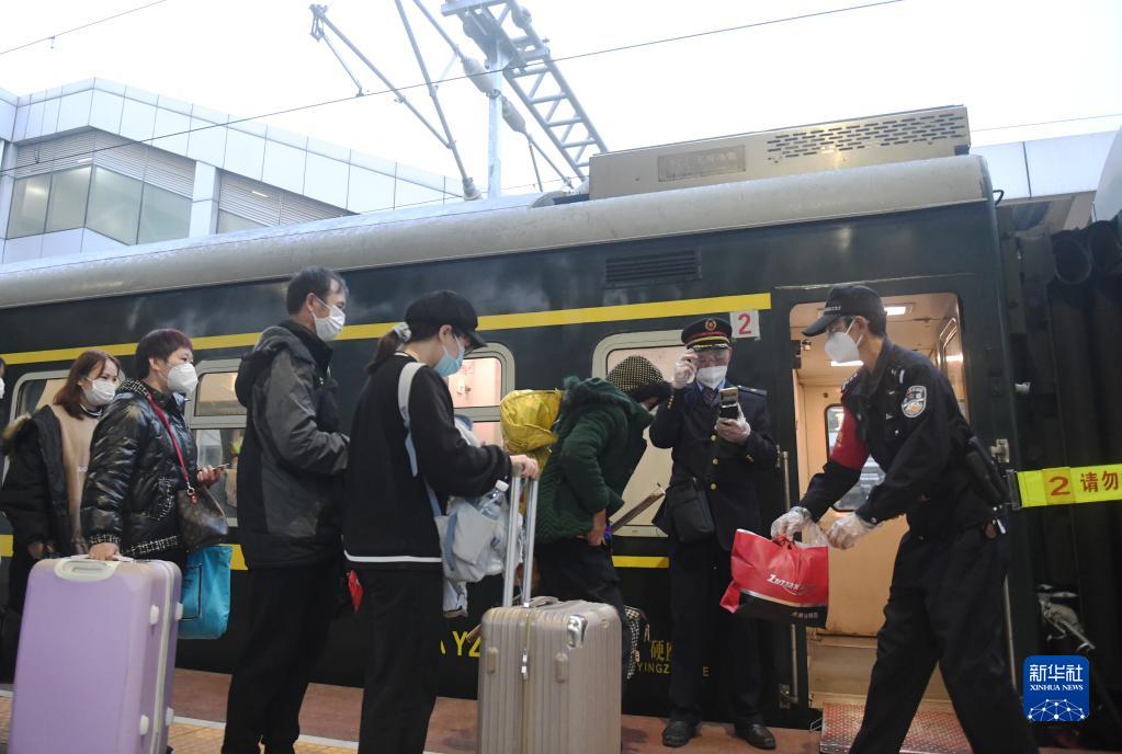 1月10日,覃业民在南宁站引导旅客有序上车。