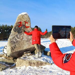 在漠河市北极村,游客拍照留念。新华社记者徐凯鑫 摄