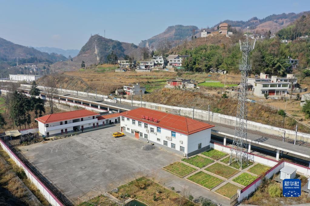 大山深处的大田坝车站(1月11日摄,无人机照片)。