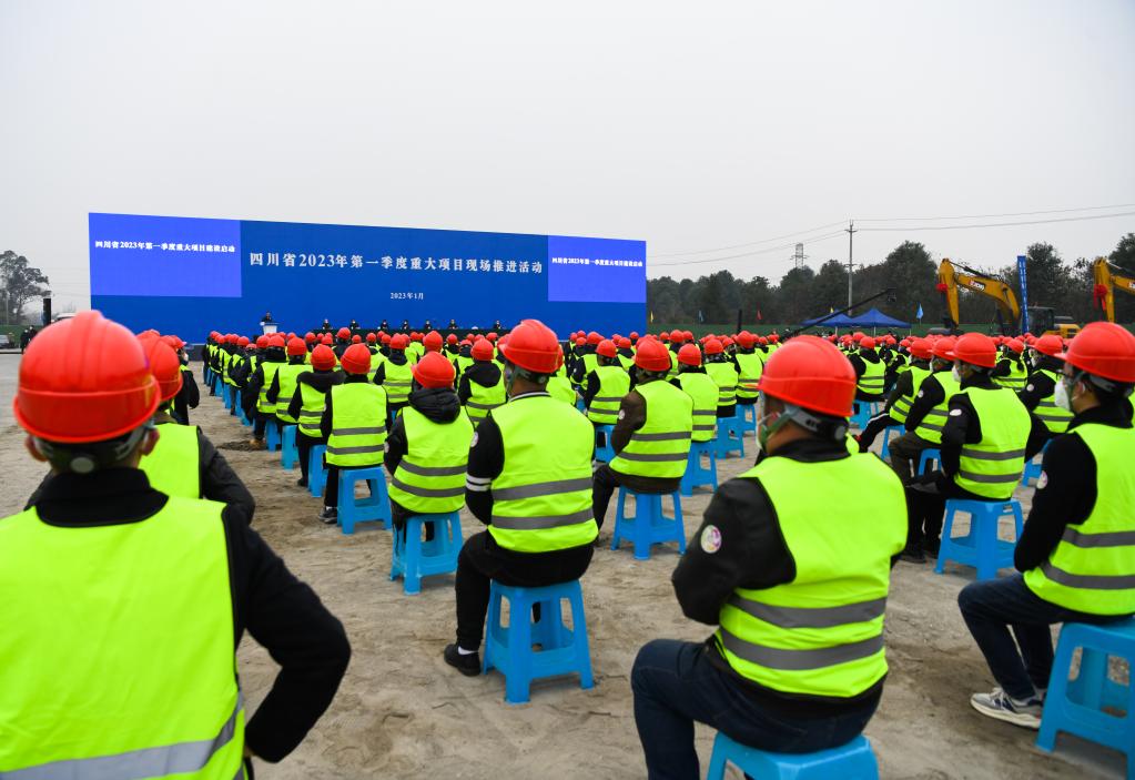 1月3日在四川成都市华能彭州燃机项目现场拍摄的四川省2023年第一季度重大项目现场推进活动。新华社记者王曦 摄