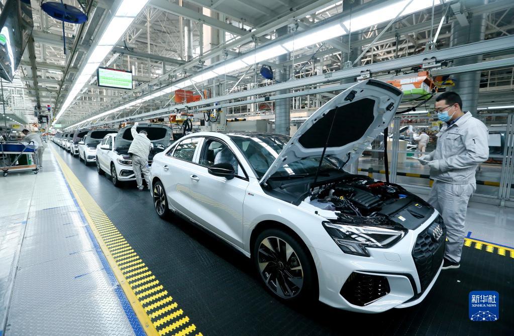 近日,在位于山东省青岛市即墨区的青岛汽车产业新城,汽车生产企业一片繁忙景象,工人们开足马力赶订单,满足国内外市场需求。