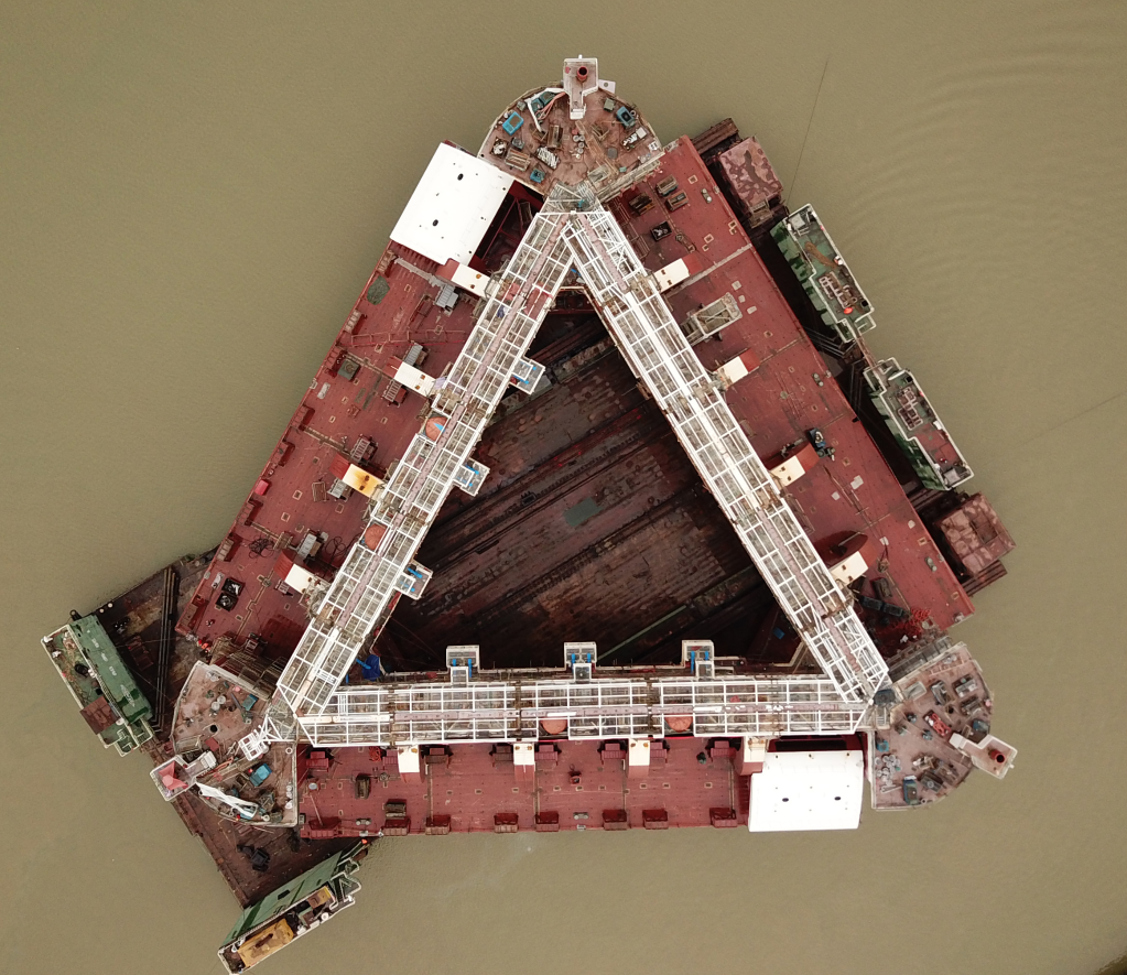1月10日,兆瓦级漂浮式波浪能发电装置开展下水调试(无人机照片)。新华社记者黄国保 摄