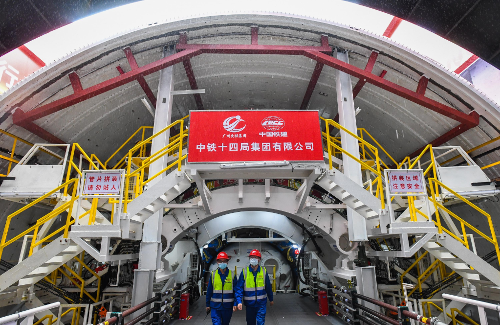 1月11日,由中铁十四局承建的广州海珠湾隧道工程西线隧道直径15.07米“大道先锋号”盾构机顺利始发,开启穿越珠江之旅。广州南站快速通道控制性工程——海珠湾隧道以双管盾构隧道形式下穿珠江水道和洛溪岛。该线按照双向6车道的城市主干道标准建设,是广州首条超大直径市政盾构隧道。新华社记者 刘大伟 摄