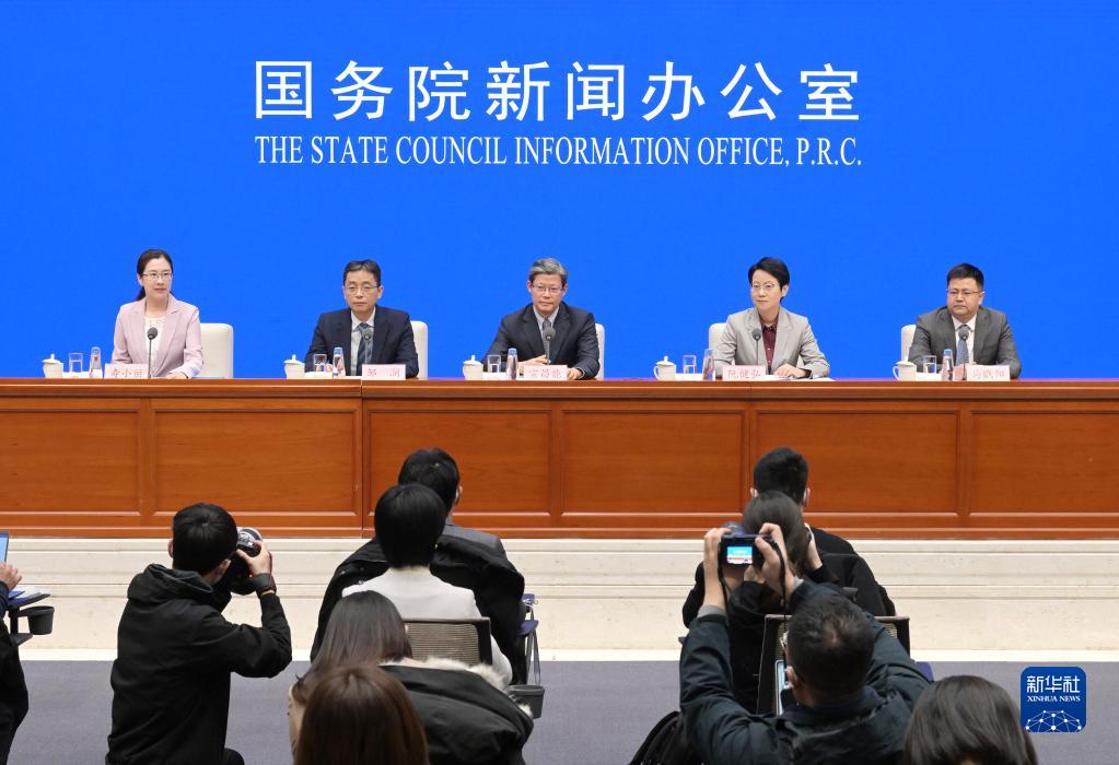 1月13日,国务院新闻办公室在北京举行新闻发布会,请中国人民银行副行长宣昌能,中国人民银行新闻发言人、调查统计司司长阮健弘,中国人民银行货币政策司司长邹澜,中国人民银行金融市场司负责人马贱阳介绍2022年金融统计数据,并答记者问。新华社记者 李贺 摄